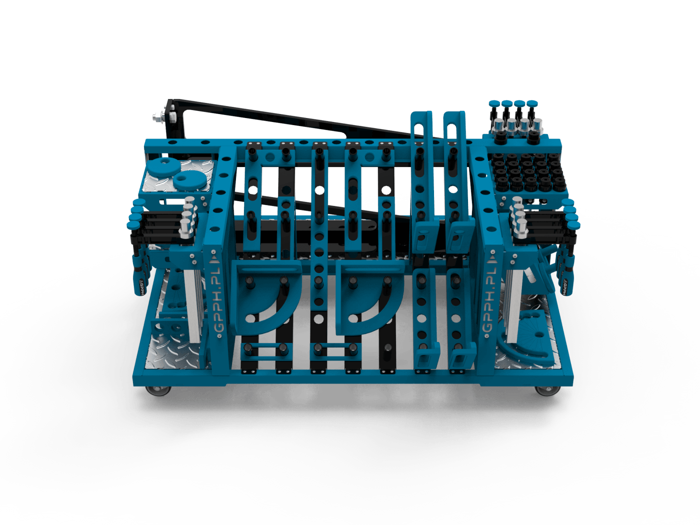 A co powiesz na nasz duży wózek narzędziowy? Możesz w nim pomieścić nawet najbardziej wymagający zestaw narzędzi. Wyposaż go w swoje ulubione akcesoria, takie jak stopery, krążki, winkle, zaciski i wiele innych, i ciesz się doskonałą organizacją swojego stanowiska pracy. Dzięki dużej pojemności i intuicyjnej konstrukcji, Twoje narzędzia GPPH będą uporządkowane i łatwo dostępne, co pozwoli Ci skupić się na realizacji Twoich projektów bez zbędnych przestojów.
