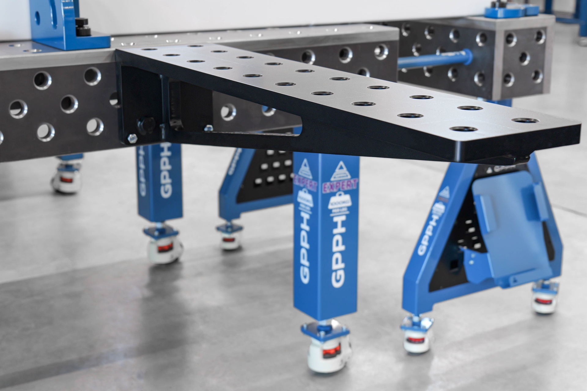 Przedłużenia do stołów spawalniczych GPPH znajdują zastosowanie wszędzie tam, gdzie potrzebna jest większa przestrzeń robocza, umożliwiająca pracę nad projektami o większych wymiarach lub bardziej skomplikowanej konstrukcji. Dodatkowo można je używać także w formie pionowej, mocując do blatu stołu, a dzięki nim tworząc konstrukcje przestrzenne w górę.