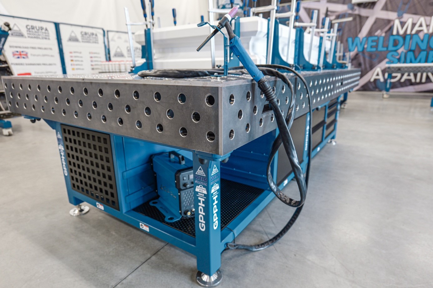 • Ergonomiczny stół spawalniczy: Centralnym elementem WeldStation jest solidny blat spawalniczy, który zapewnia stabilną i wygodną powierzchnię roboczą.